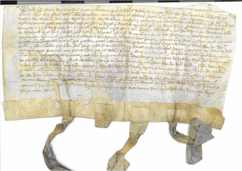 Quitclaims are usually written in Latin on parchment although the odd English word can creep in like ‘Gentilman for example: