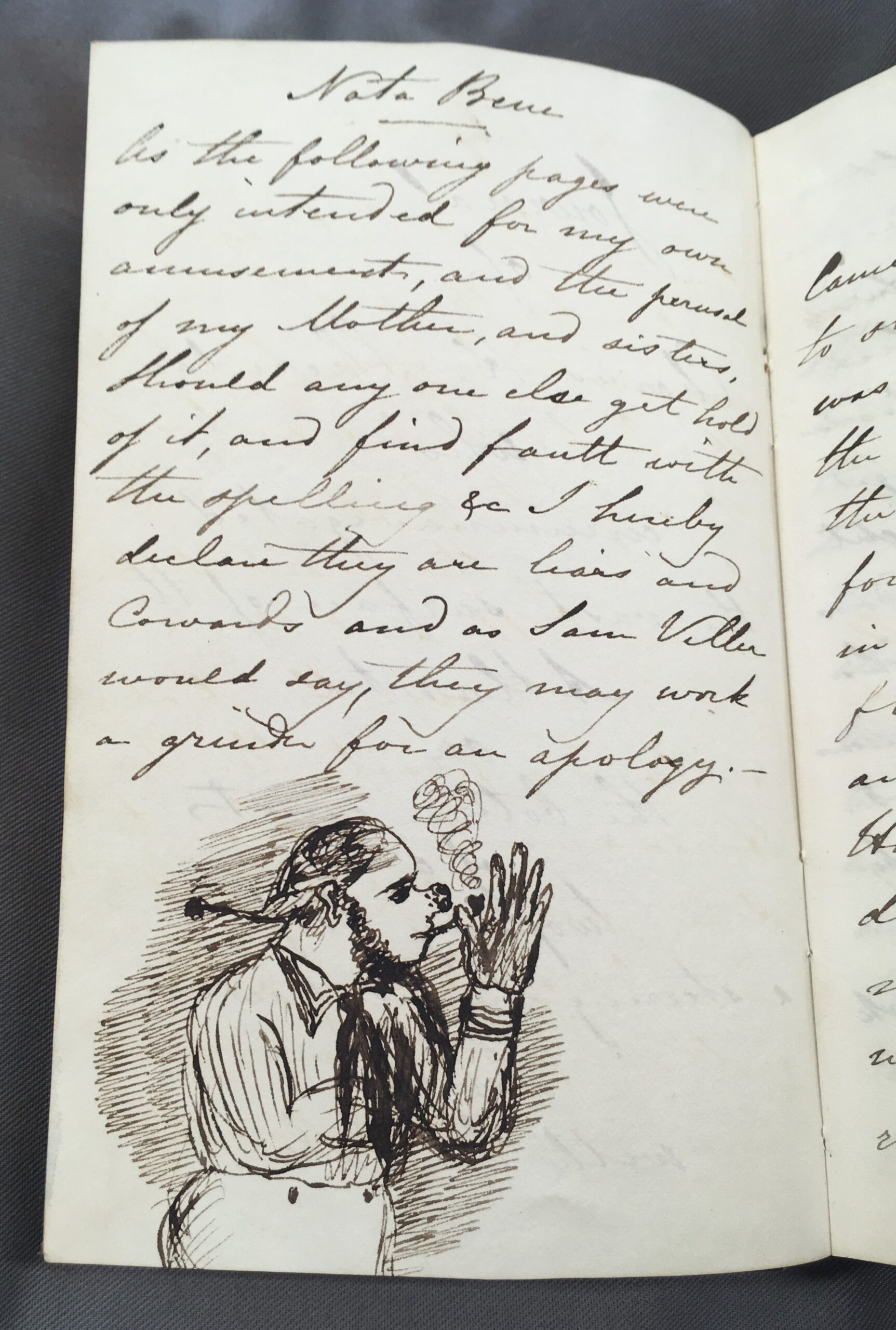 ‘As the following pages were only intended for my own amusement, and the perusal of my Mother, and sisters, should anyone else get hold of it, and find fault with the spelling … I hereby declare they are liars and cowards’.