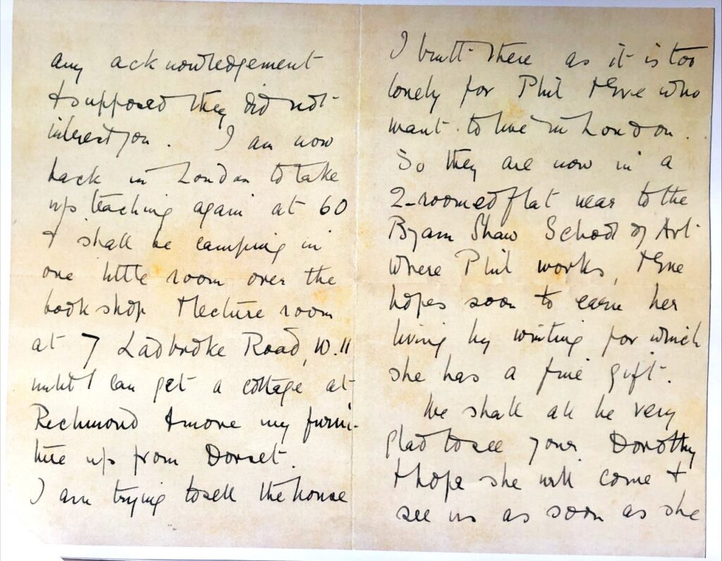 Their life on the farm was short-lived however, as seen in letters written by Miss Curtis to her sister Clara living in America.  Phil and Eve were finding it too lonely in Dorset and wanted to live in London, so Miss Curtis put the farmhouse on the market in around 1928.