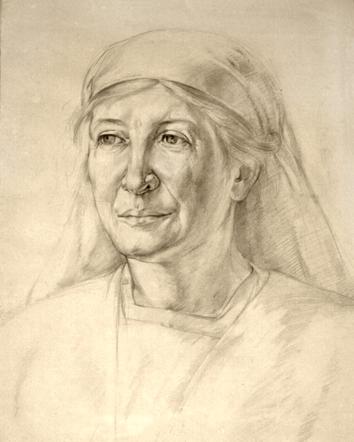 A pencil sketch of Miss Curtis. (No date) © Othona Community