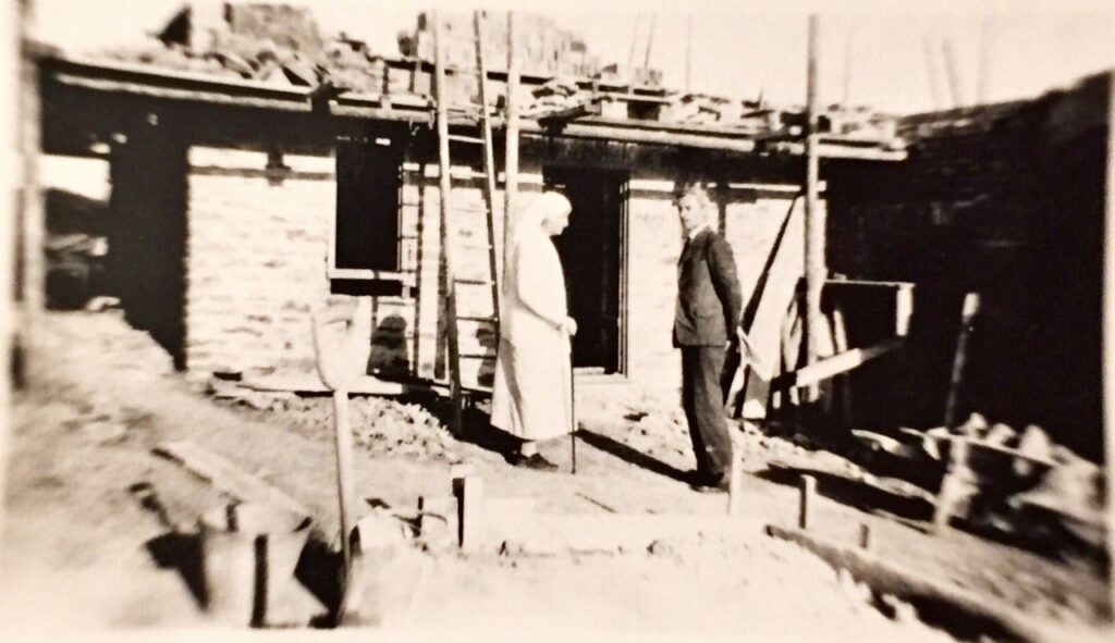 Photo of house under construction with AMC in the foreground. (Likely to be 1927) © Othona Community