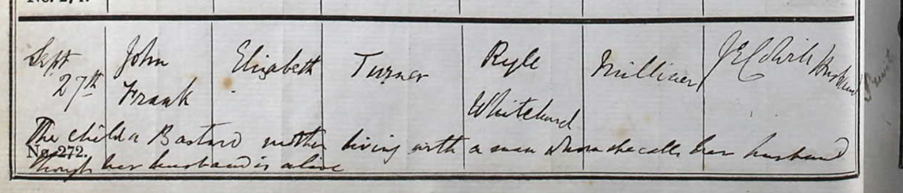 Perhaps so, because two years later- when another son, John Frank, is baptised – the Vicar has explained the situation more fully writing,