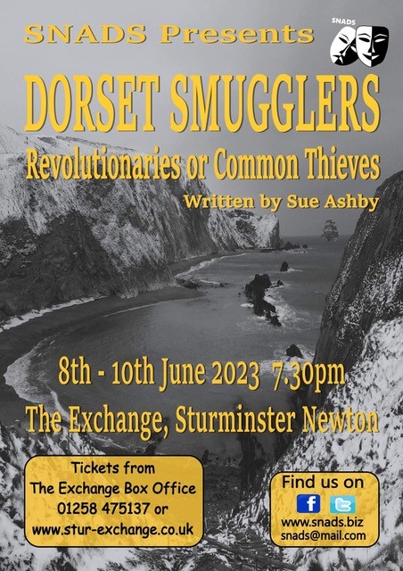Most recently (2023) I researched and wrote Dorset Smugglers: Revolutionaries or Common Thieves for SNADS who performed it at The Exchange in early June. Like Flea the Pandemic it was an ensemble piece with up to twenty actors. The play follows Isaac Gulliver from his marriage to Elizabeth Beale in 1762 to his death in 1822. From his faithful fellow smuggler Roger Ridout carrying out the runs of contraband on Lulworth beach, their daring grows to execute the rescue of French aristocrats from the guillotine and the theft of the Blue Diamond from the French Crown Jewels.