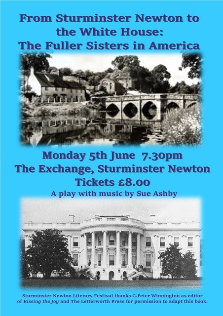 Finally, for Sturminster Newton’s 2023 Litfest I wrote a short one woman play, From Sturminster Newton to The White House: the Fuller Sisters in America, which followed their five folk singing tours between 1912 and 1917. All of the Fuller family who lived in Bridge Street during WW1 were suffragettes and pacifists, their brother worked for the Peace movement in America during the war. This play – performed at The Exchange – has created an important connection between myself and a folklorist in America that has an important archive of the Fuller sisters WW1 tours in Washington.