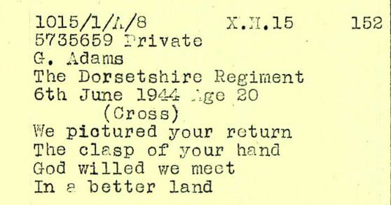 Of the eight Dorchester men killed on or around D-Day, five were in the Dorsetshire Regiment, including Privates George Adams and Robert Rogers and Sergeant George Ernest Cheffey.
