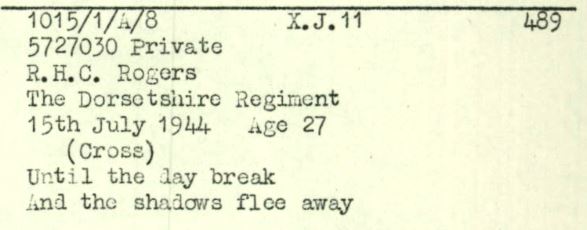 George died on 10th July 1944, and is buried at St Manvier War Cemetery, Cheux.
