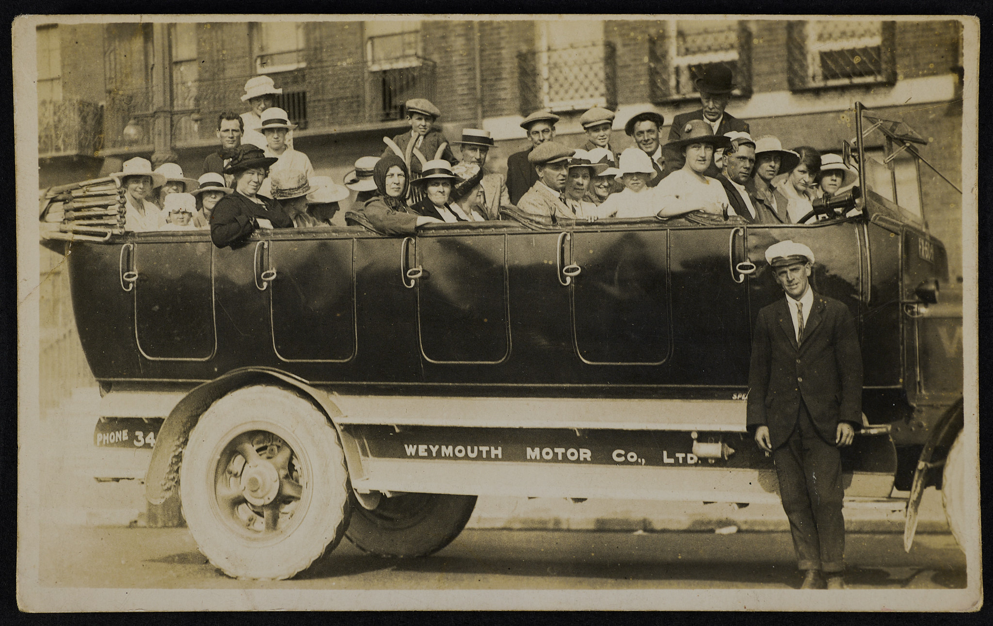 D-DPC/WY/10 and 78 – These next two postcards show examples of some of the modes of transport visitors to Weymouth might have used in the early 20th century – horse-drawn buses and charabancs.