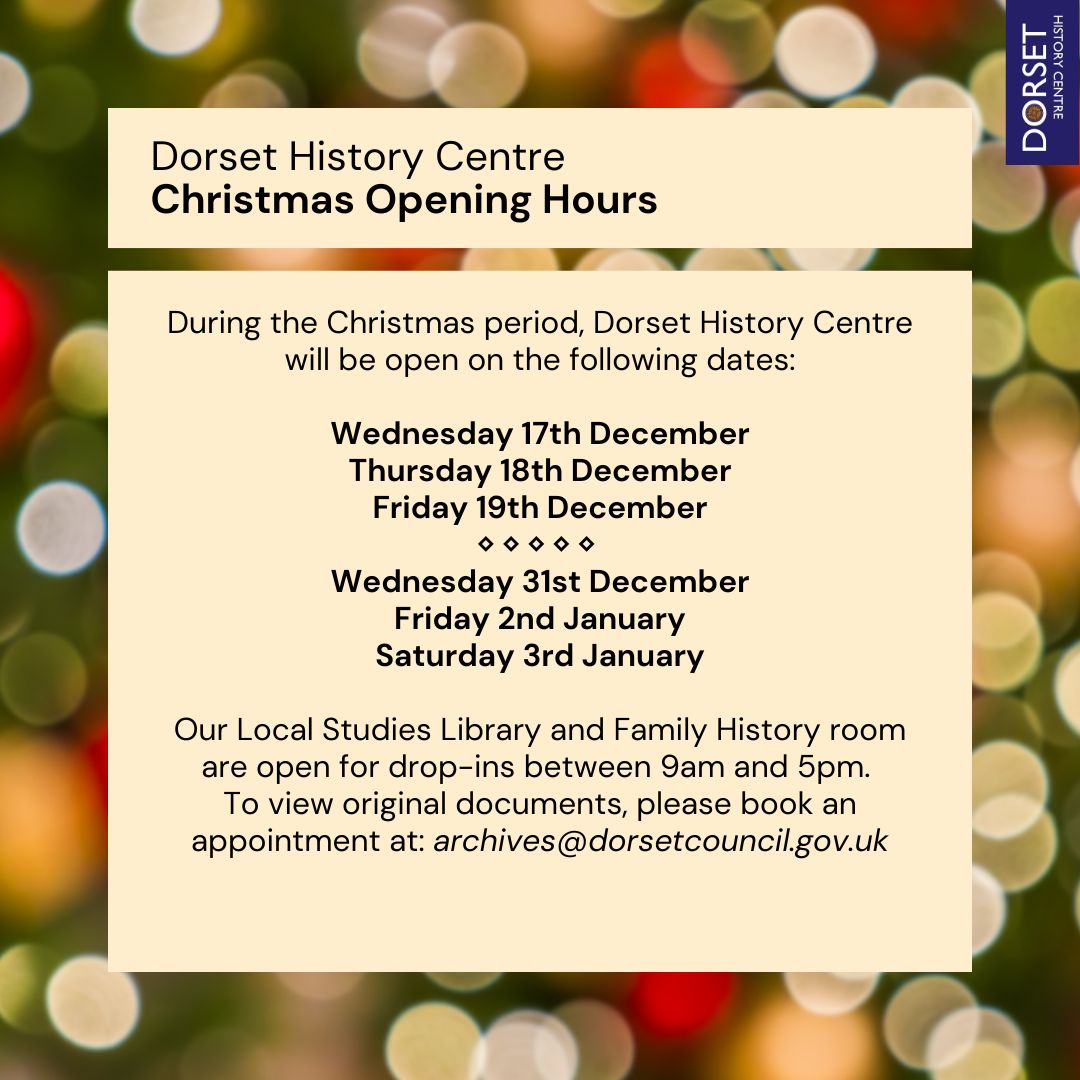 If you would like to visit over the festive period, please get in touch to make an appointment: archives@dorsetcouncil.gov.uk