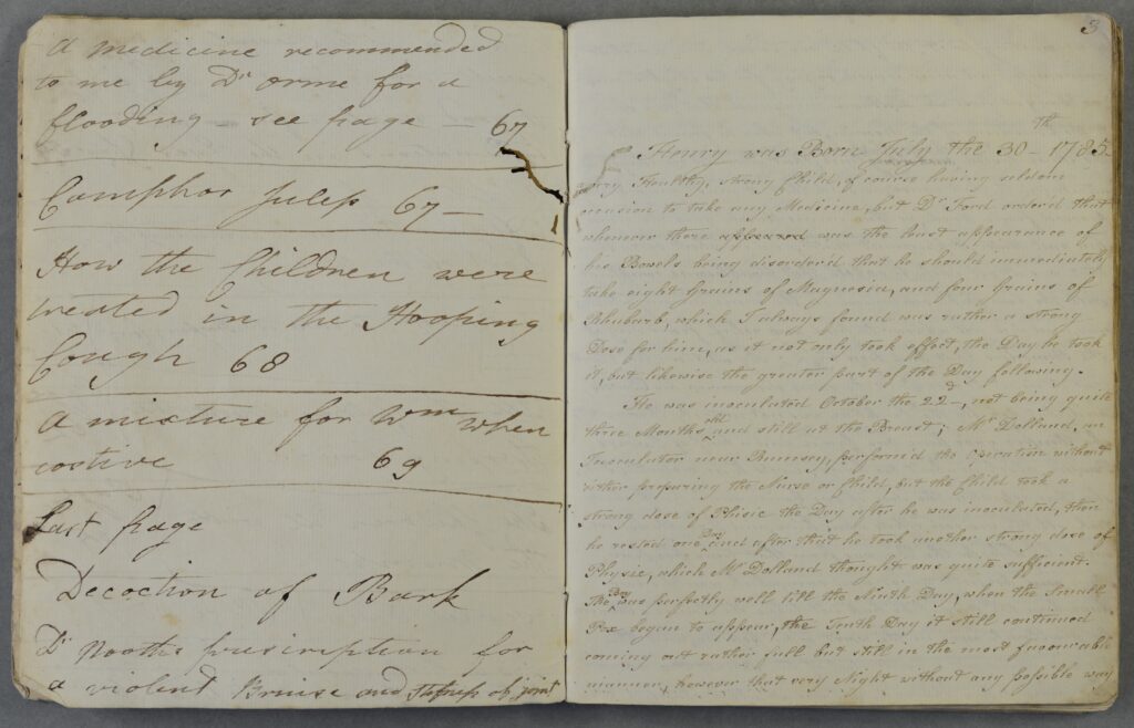 Frances Bankes (1760-1823), mistress of Kingston Lacy and mother to six children, took her family’s health seriously. In her meticulous medical notebook, she left a fascinating account of a procedure that still causes controversy today – inoculation.