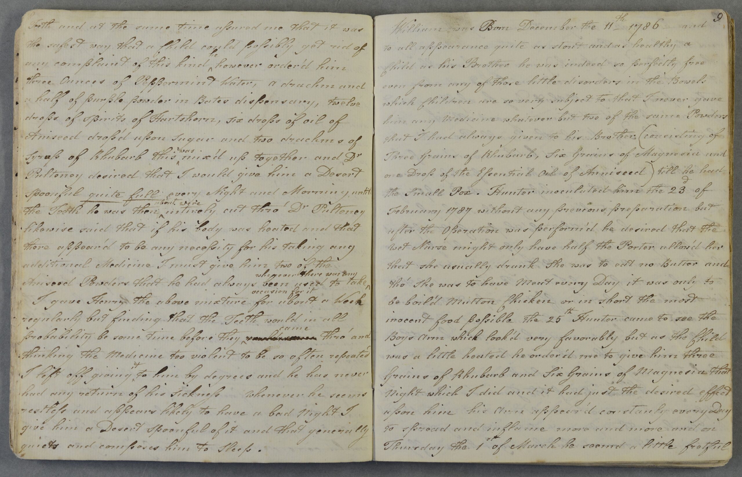‘Hunter inoculated him on 23rd February 1787 without any previous preparation but….he desired that the wet Nurse might only have half the Porter allow’d her. She was to eat no Butter …….. in short the most inocent food possible’
