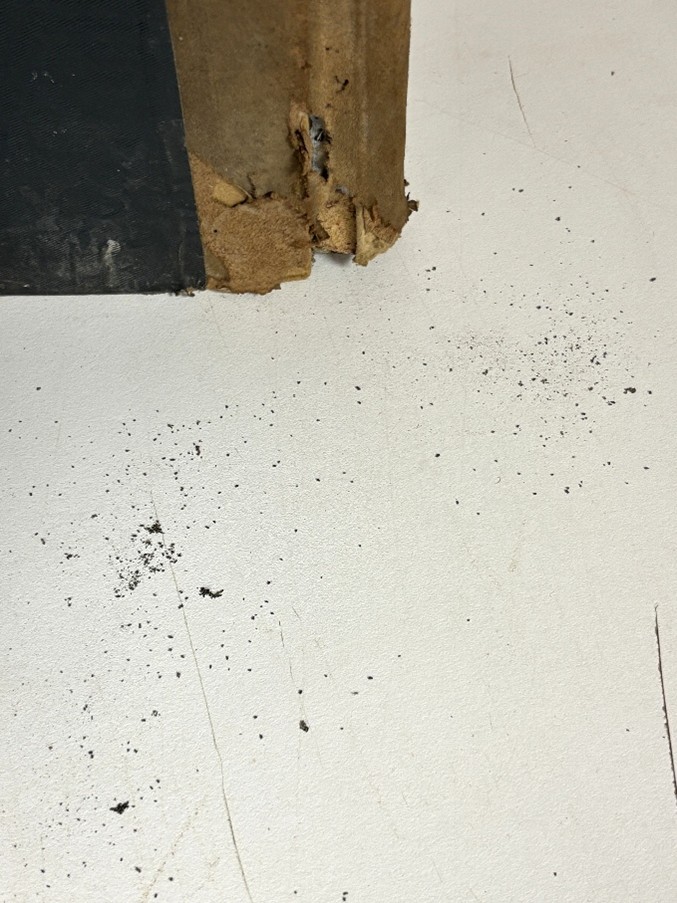 Not all damage is immediately obvious. Sometimes the clues are small: slight cockling along the edges of a book, suggesting high humidity, or tiny holes that hint at insect activity. A gentle tap on a table may release tiny black particles – frass, the waste left behind by insects – confirming the presence of pests.