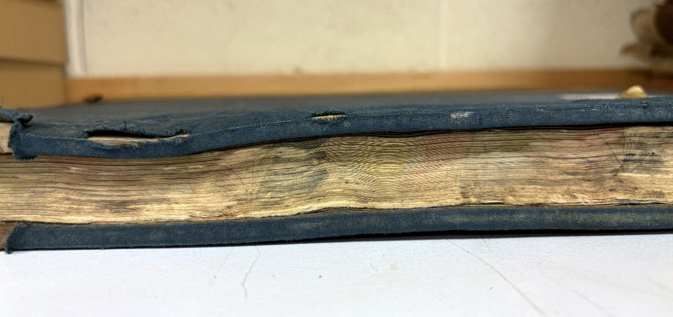 Other times, the damage is unmistakable. A recent accession included several volumes so deteriorated that no investigation was needed to see the extent of the problem. At present, the conservation work required is beyond our capacity, meaning these items remain inaccessible. Preventing records from reaching this stage is one of the strongest arguments for depositing them with us sooner rather than later.